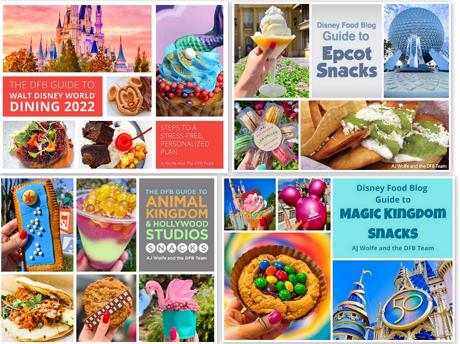 WE KNOW – there are SO many great snacks at Disney World! How do you choose (we don’t want to choose, but if we don’t, we’ll blow our budget on Day 1!)? We’ve got you covered! We have reviewed nearly EVERY snack available at Disney World, and we’ve written a series of DFB Guides about them! Check out our DFB Guide to Walt Disney World Dining + Snacks Bundle for all the details you need to plan your snackin’ and spending. You can even download them to your smartphone – it’ll be like we’re right there with you in the parks! Use code WDW2022 to get 25% off!