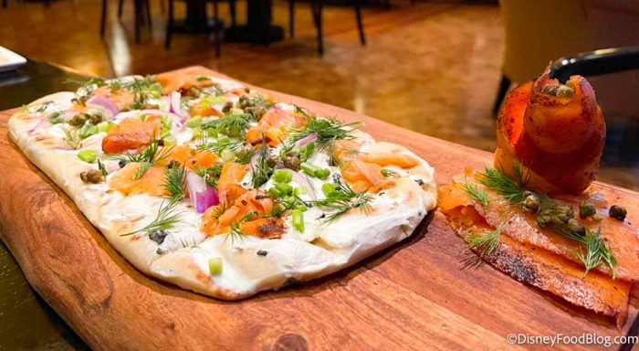 First up, the Salmon Run flatbread! It’s topped with an in-house dill-cured gravlax salmon with truffle cream cheese, fried capers, onions, black sea salt, and dill. pic.twitter.com/ZGXQasUrl8