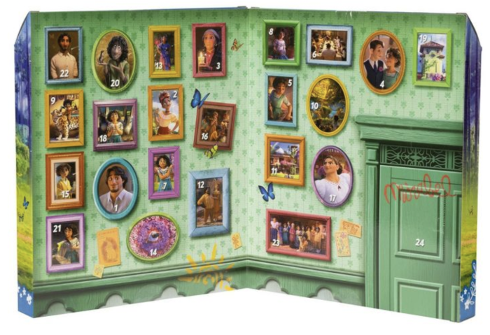 This calendar comes with 24 days of surprises including 14 Encanto characters and 13 accessories. Some of the characters include Bruno, Mariano, Young Mirabel, Camilo, Abuela, and more!