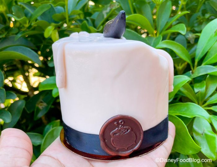 We’re all familiar with the Black Flame Candle, right? Well, now you can get it…as a CAKE. That’s right, there’s a Hocus Pocus Black Flame Petit Cake at Amorette’s Patisserie in Disney Springs! It’s made with Devil’s Food biscuit, apricot jam, brandy simple syrup, caramel mousse, and candied pecan crunch. Sounds unique, right?
