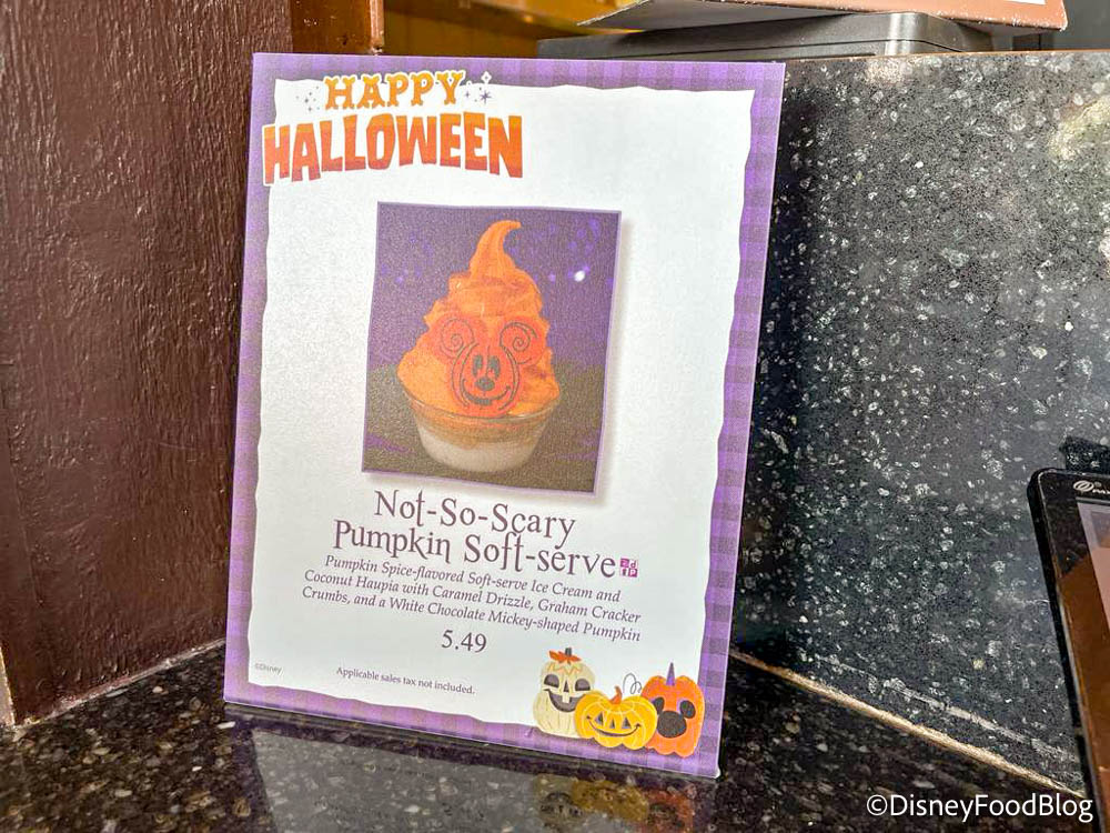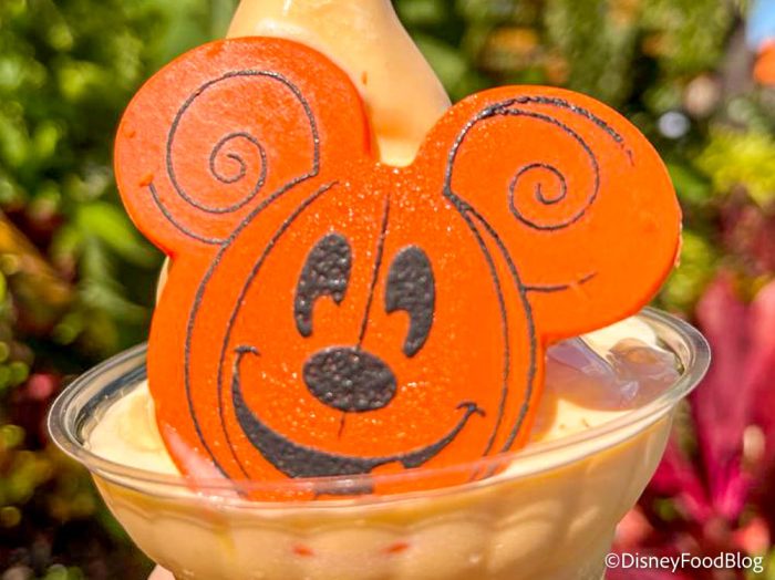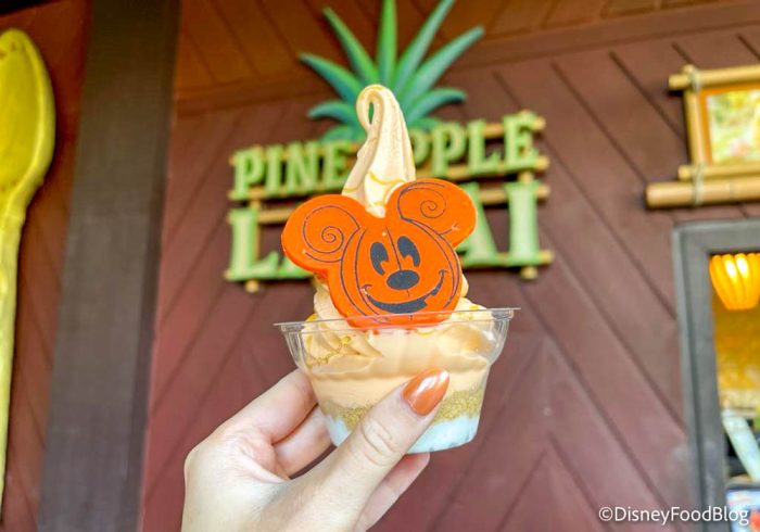 We’re headed to the hotel that is a Disney foodie’s paradise — Disney’s Polynesian Village Resort! Over at Pineapple Lanai, the spot where you can grab a Dole Whip, is now serving up the Not-So-Scary Pumpkin Soft Serve. SpoooOOOoooOOOky!