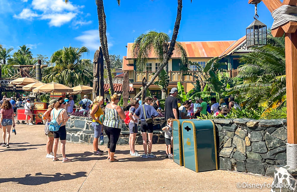 Lines for food could be long, too — this is what the line for the Spring Roll Cart looked like this morning. We also saw a huge backup of Mobile Orders over at Pecos Bill.