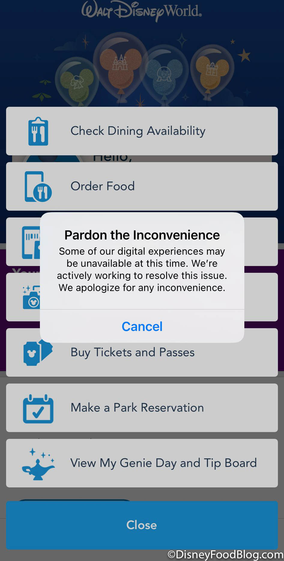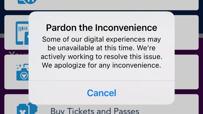 Solution: Always bring a backup battery for your phone and have a backup plan if the My Disney Experience app goes down completely. You can still order food at the counter or shop in the store, and you can speak to a Cast Member if the app is impacting your Genie+ Lightning Lane bookings.