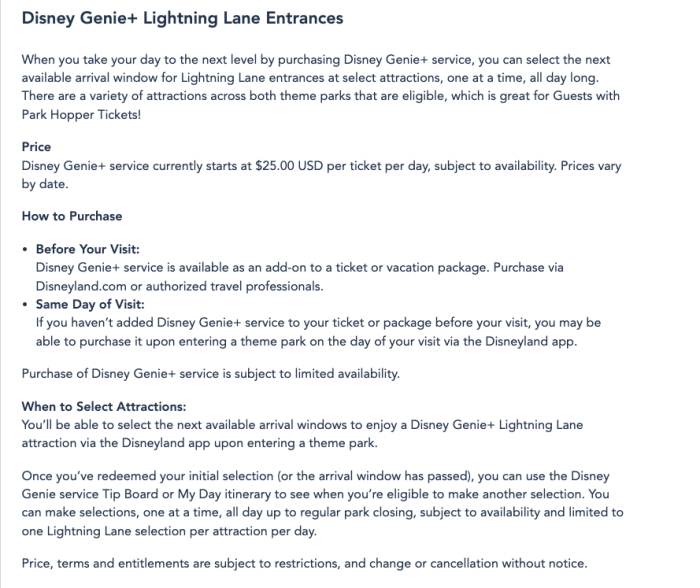 Disney Genie+ now starts are $25 per ticket, per day at Disneyland Resort. The prices will also be varying by date and subject to availability. Thanks to our friend Joe (@schreiberjoe on Instagram), for alerting us about this change.