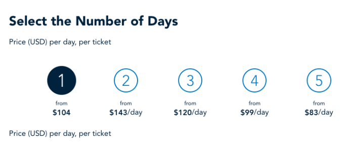 Keep in mind that ticket prices vary depending on the date and time of year thanks to Disneyland’s tiered pricing system, so you often see prices higher than $104. During a peak visiting time like the holidays, tickets can cost you more — and now, it looks like some of the most coveted park days coming up can cost as much as $179 for one day and one park! The biggest increase came to 2-day tickets, which jumped from $255 to $285 on select days.