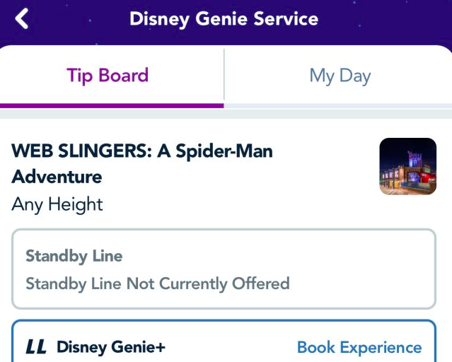 But now, WEB SLINGERS is included with your regular Genie+ purchase. Keep in mind that Genie+ now starts at $25 per ticket instead of the prior $20, and could be even more expensive on high capacity park days and depending on when you visit. It’s also important to note that this new changes also says Genie+ is “subject to availability.”