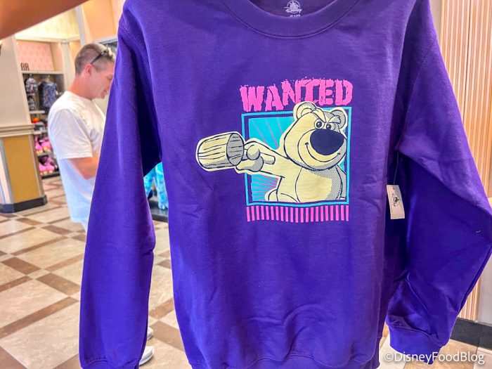 Coming in with another villain, Lotso is the star of the Wanted Sweatshirt for $52.99.