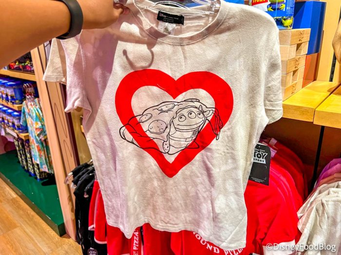 In the park’s newest store, we found more Pizza Planet merch including the My World Revolves Around Pizza Shirt for $49.99…