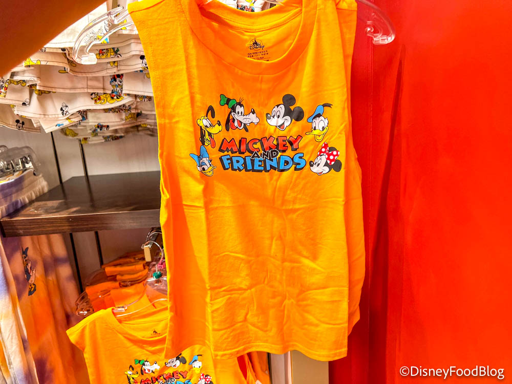 If you want a bright shirt, check out the Mickey & Friends Tank Top that is looking good in yellow/orange for $29.99!