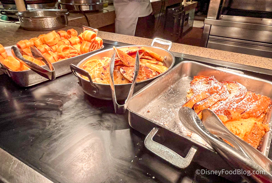 For the rest of the meal, we had to get up from our seat. But, no complaints here as the buffet looked pretty promising with items like Mickey waffles, chocolate chip pancakes, and French toast.
