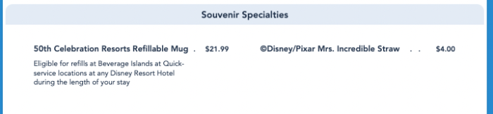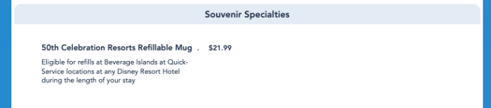If you buy one, you’ll then be entitled to unlimited free refills on fountain drinks, coffee, and tea from participating beverage locations throughout the length of your Disney World resort hotel stay.
