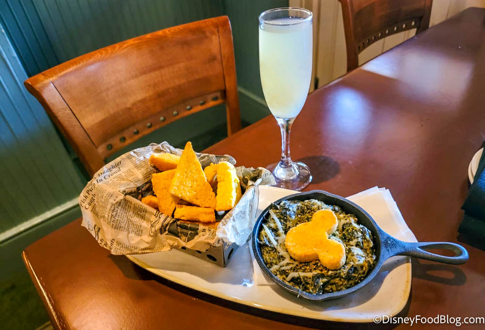 2022-wdw-disney’s port orleans resort-riverside-river roost-new menu items-spinach and artichoke dip-plant-based-vegan-and french 75 By Sara McOmber Leave a Comment