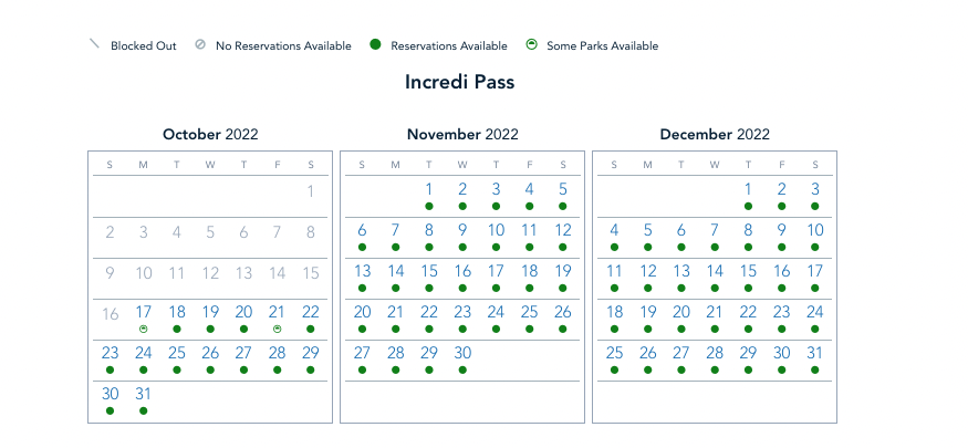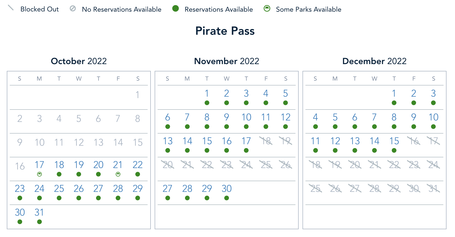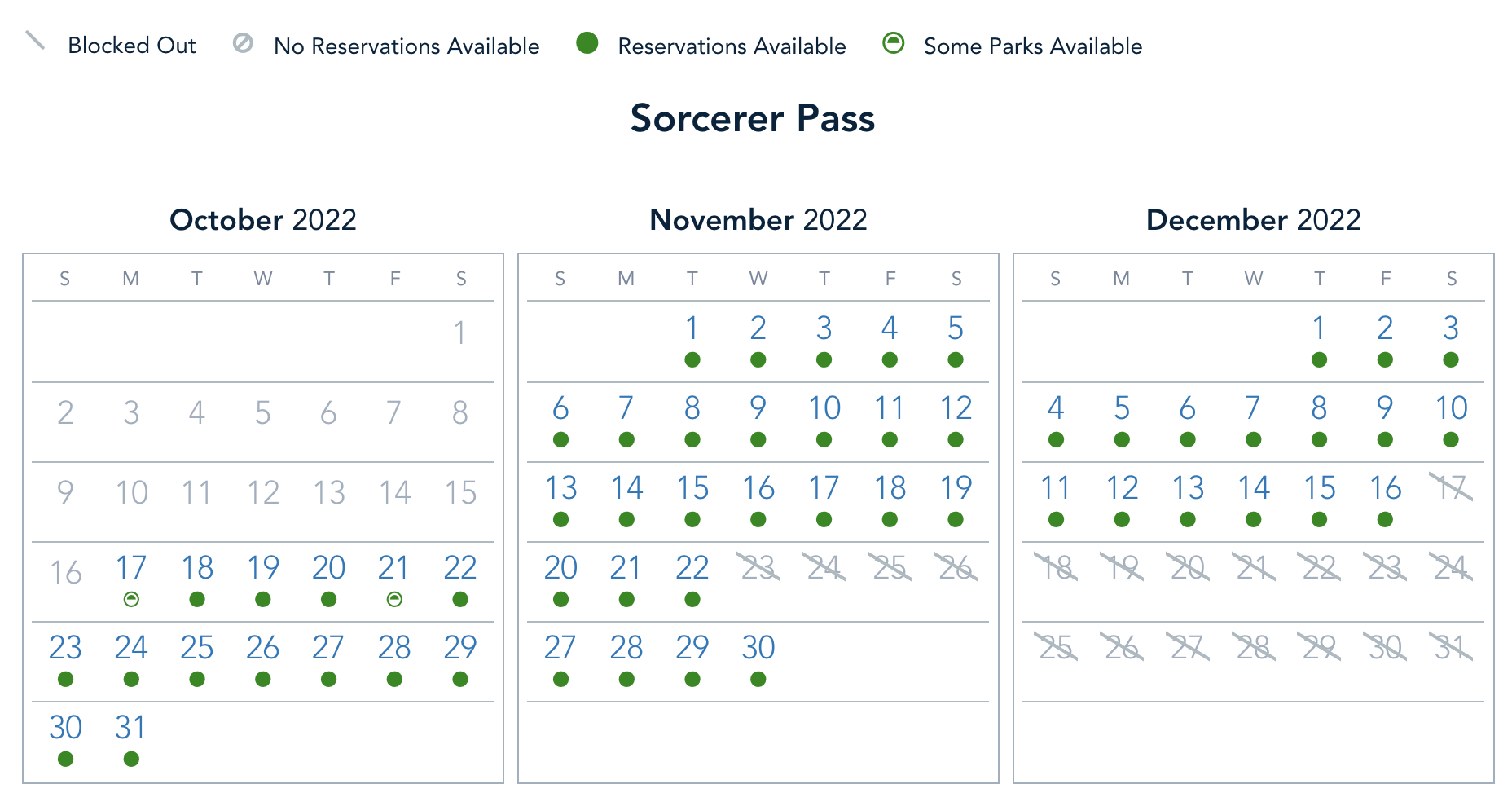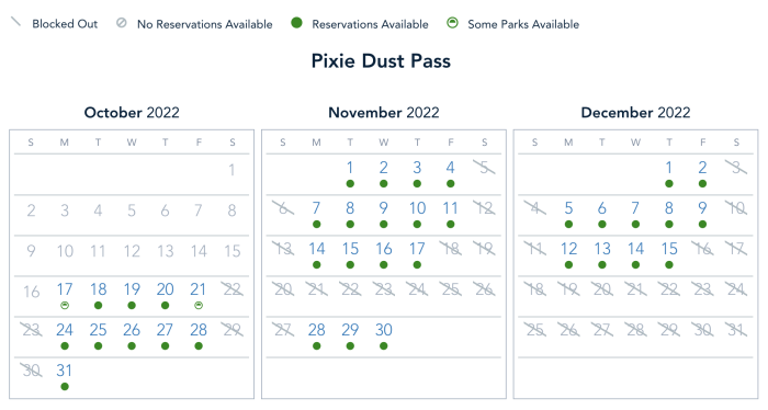 And the Pixie Dust Pass has quite a few blockout dates, but the rest of the open dates still have full availability.