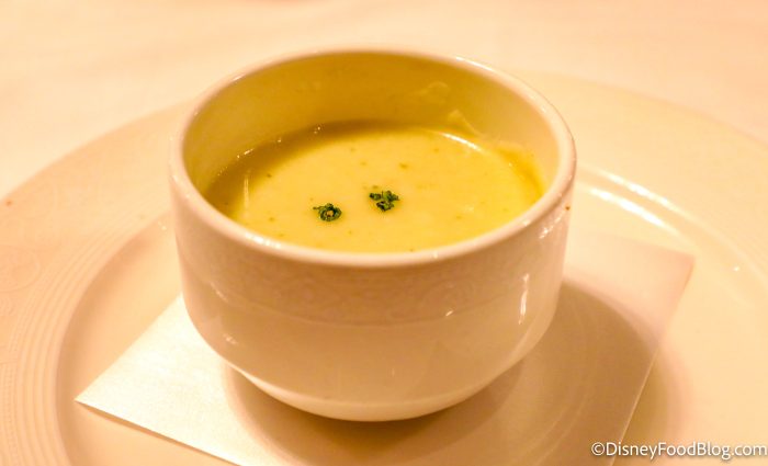 And the Potage Parmentier was a leek and potato soup, which was a basic potato soup. It was packed with heavy potato flavor, cut a little bit by the sharpness of the leek.