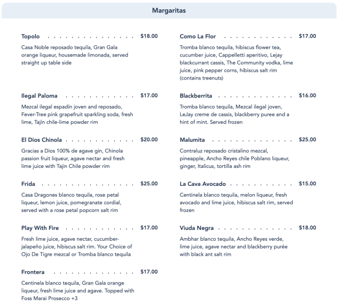What goes better with tacos than a margarita?! There are plenty to choose from on this menu.