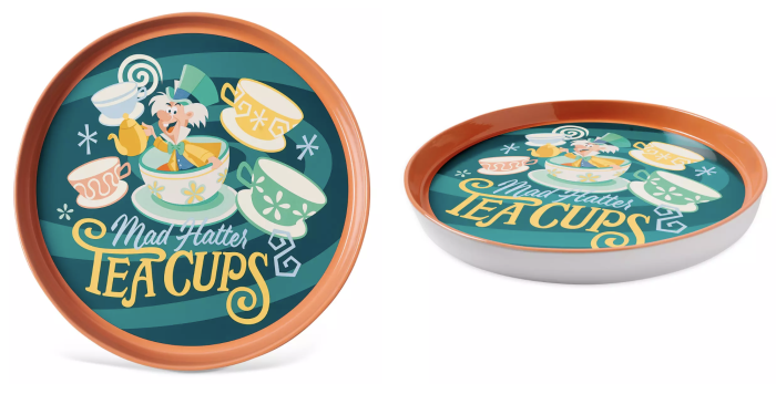 Next, for any mad tea party, you absolutely need the perfect serving tray for you and your guests. This Mad Tea Party Serving Tray is made of stoneware and it shows the Mad Hatter with his tea cups ready for a spin.