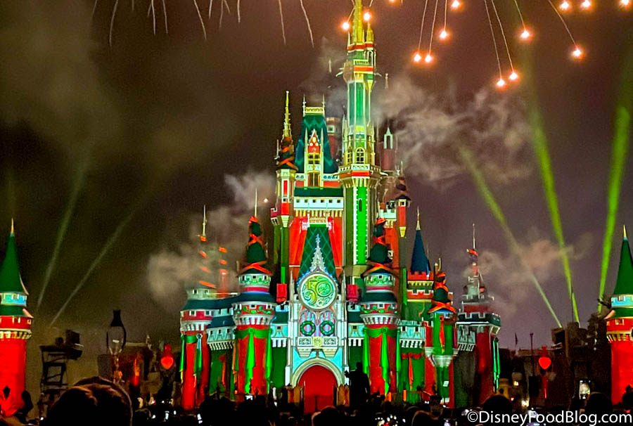 During the holiday party, specially-themed fireworks (called Minnie’s Wonderful Christmastime Fireworks) are shown. While you can watch these from various spots within the park, you could enjoy reserved seating for the show AND desserts at a special dessert party.
