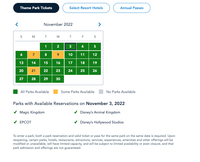 Park pass availability for November 3rd may look fine when you look at availability for guests without an Annual Pass…
