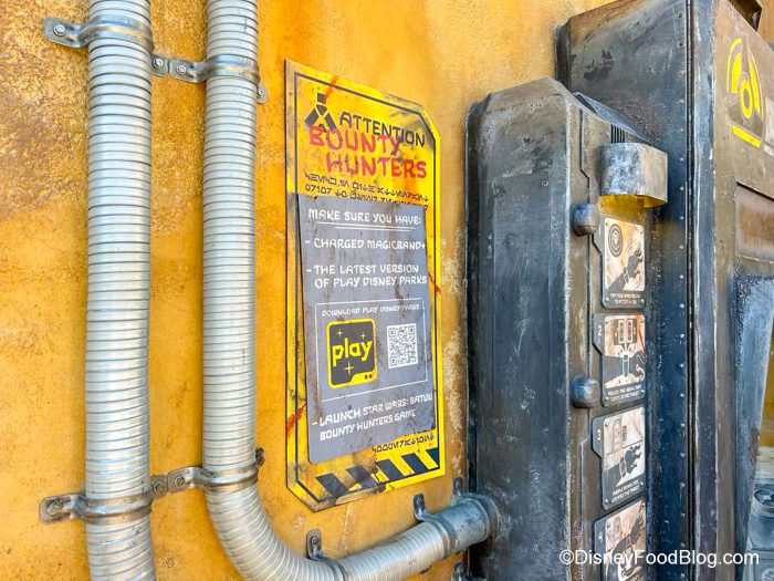 Now, let’s test out these new bands! First, we’re heading over to Star Wars: Galaxy’s Edge to play the Batuu Bounty Hunters game! You start by visiting the Bounty Board in that land!