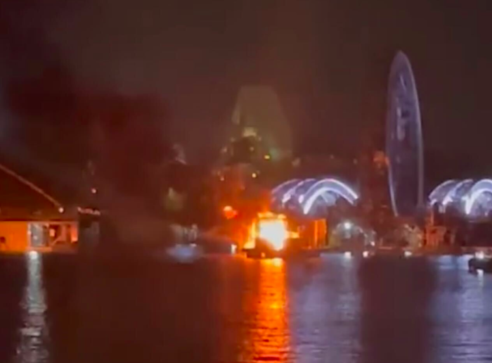 Tonight, several visitors in EPCOT tweeted videos that showed one part of the barges appearing to catch fire.