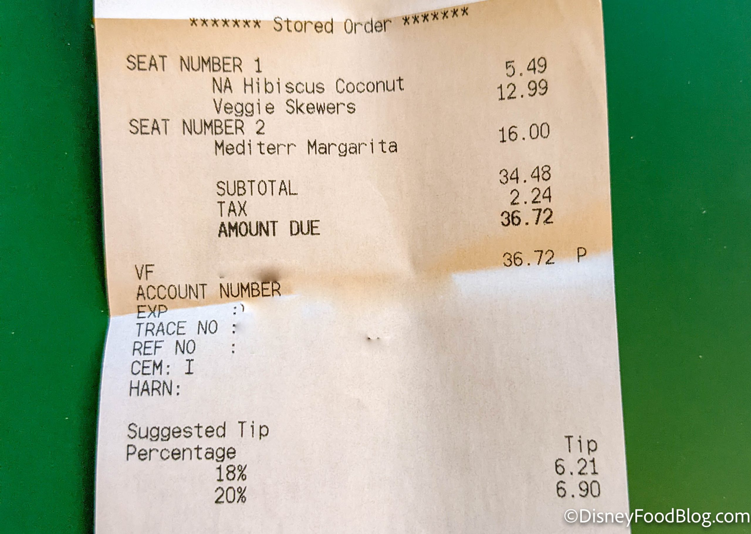 And when it comes to dining, most Disney World receipts actually calculate the amount for both 18% or 20% tips so you don’t have to do TOO much math or guessing games. If you want to tip 25%, you can increase your tip amount.