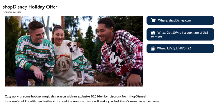 From now through the end of the month, D23 members can save 20% on orders of $60 or more on shopDisney.