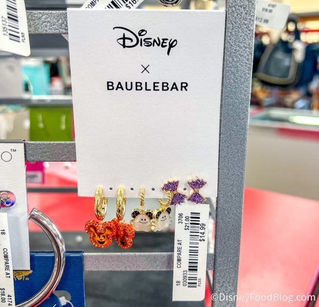 But wait, there’s more! We also spotted some Disney Halloween earrings! This set of 3 was $14.99.