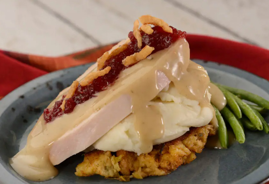 - Holiday Turkey Sandwich: Oven-roasted turkey with cornbread stuffing, cranberry sauce, and gravy on a freshly-baked ciabatta roll from the Grand Floridian Bakery. Available November 24th-November 27th