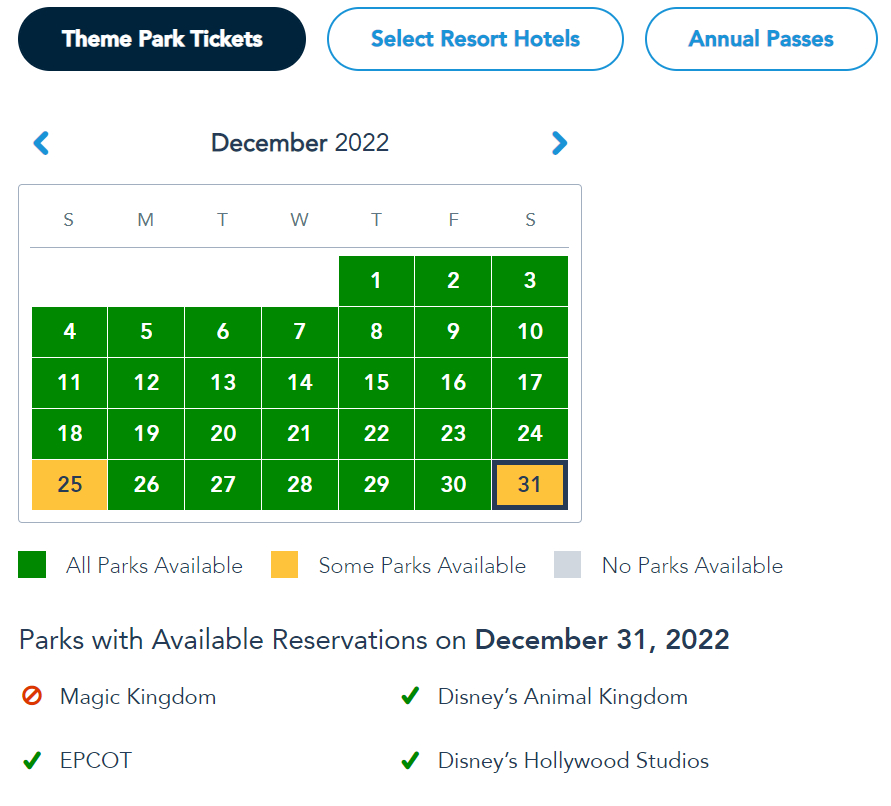 We can already tell you that Christmas Day in at least one park at Disney World will be completely full — park pass reservations are gone for Magic Kingdom on Christmas Day.