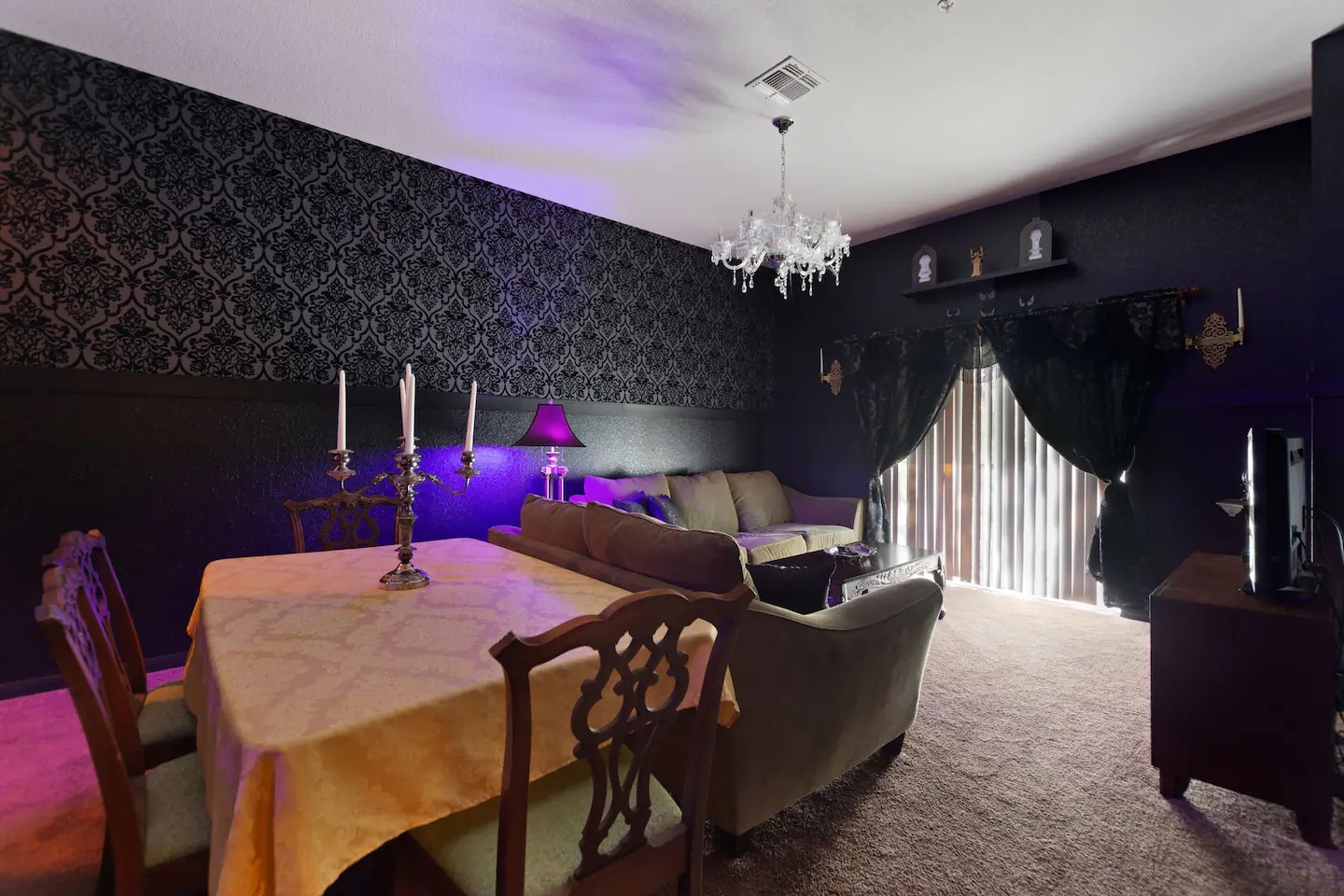 Over in Davenport, Florida, you will find an Airbnb that is fully DECKED OUT in Haunted Mansion decor! For reference, Davenport is, in general, about 35 minutes away from Magic Kingdom.