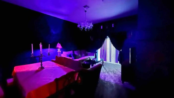It seems the house is flooded with purple lights too, making things feel extra eerie!