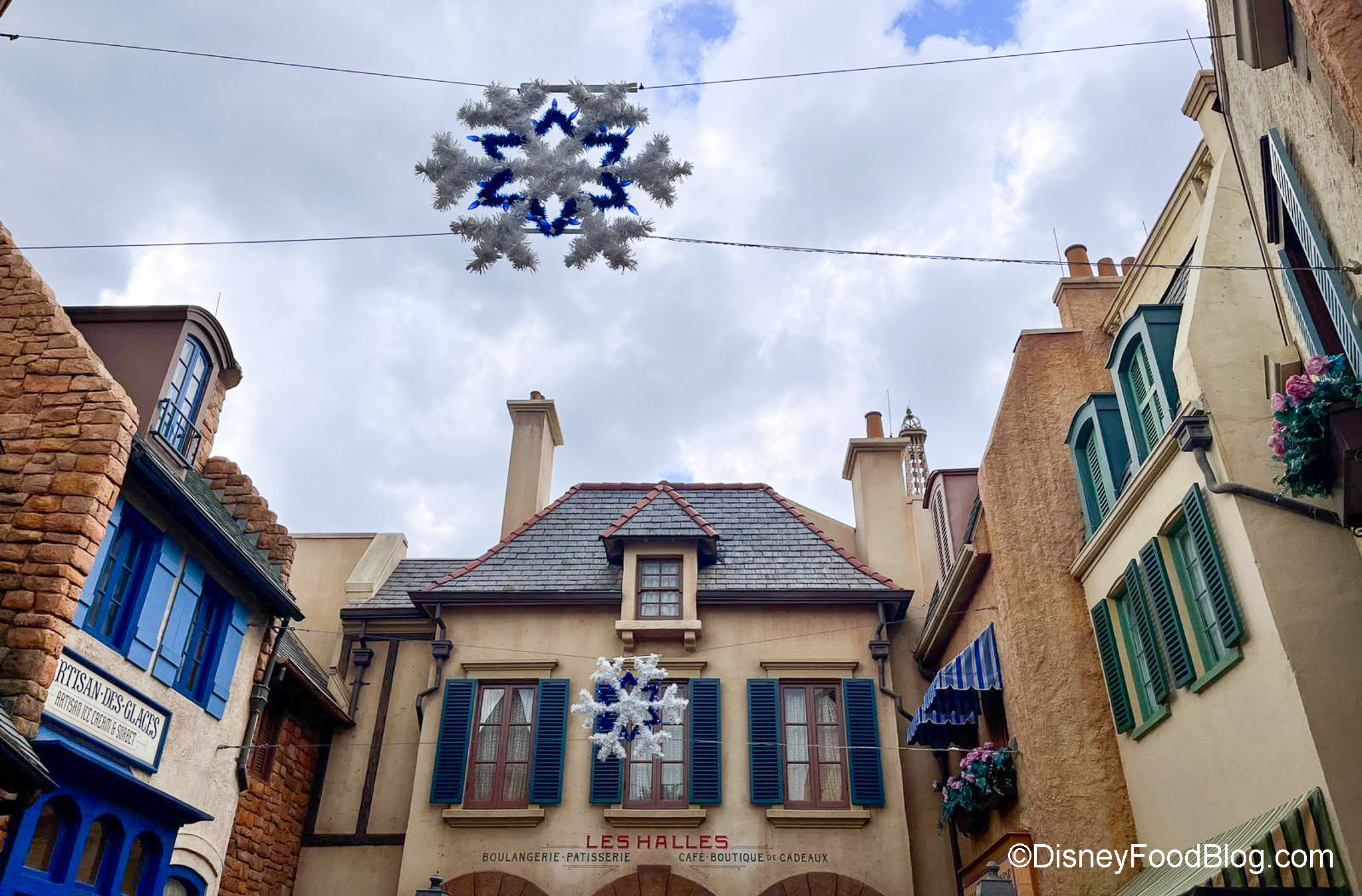 Last year, it seemed like we had to wait FOREVER to see holiday decorations in EPCOT, but this year, it looks like they’re getting an early start! So be sure to look up if you’re visiting the France Pavilion this weekend!