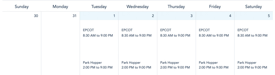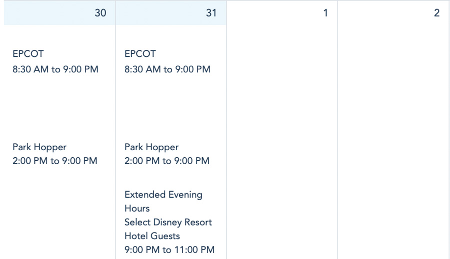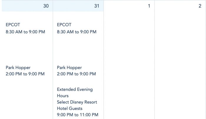 EPCOT Park Hours