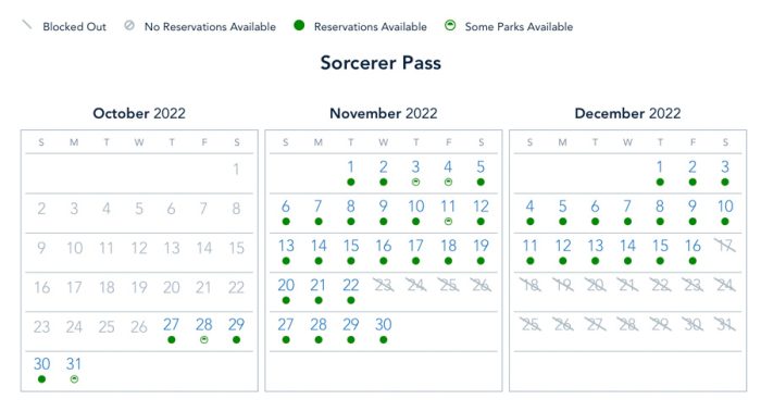 Sorcerer Passholders is the same thing — booked up for Magic Kingdom on October 31st, and Hollywood Studios on November 3rd & 4th.