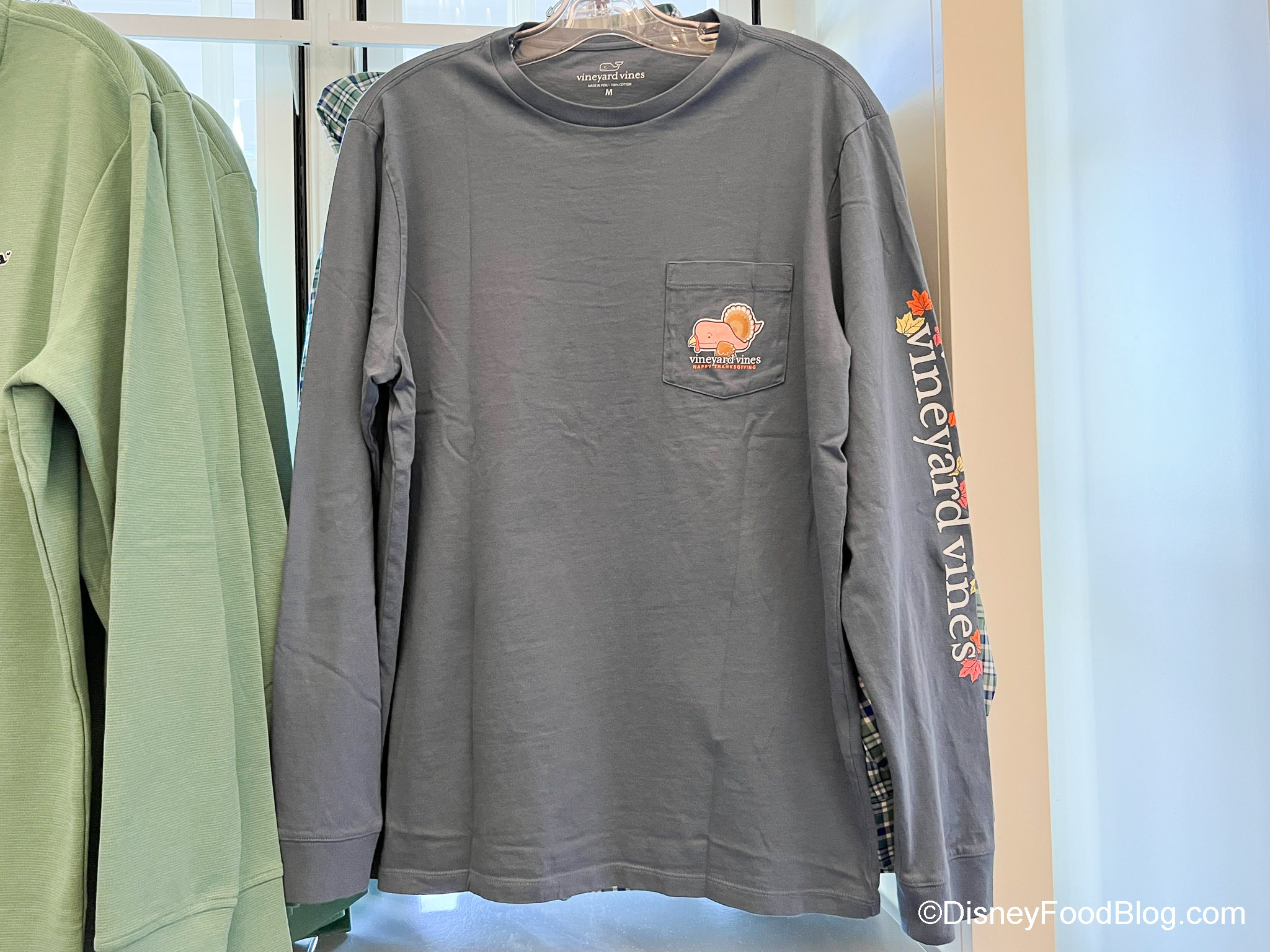 We also found some new Vineyard Vines holiday shirts. There’s a navy Thanksgiving Tee that looks like this on the front…