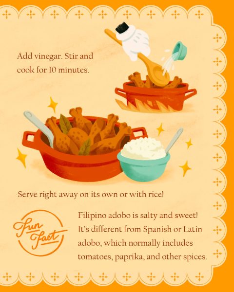Finally, you’ll add your vinegar, serve it with rice, and you’re done!