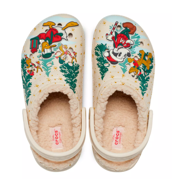 These totally NEW Crocs look like the comfiest shoe ever! Normal Crocs clogs on their own are pretty nice to wear, so we can’t even imagine the level of cozy this fleece-lined pair achieves. The Mickey Mouse and Friends Holiday Clogs for Adults by Crocs feature Mickey and his pals getting all ready for the holidays.