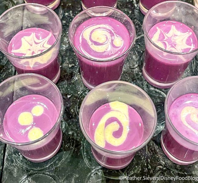 …and the chilled purple sweet potato soup, which had Halloween decorations swirled on top!