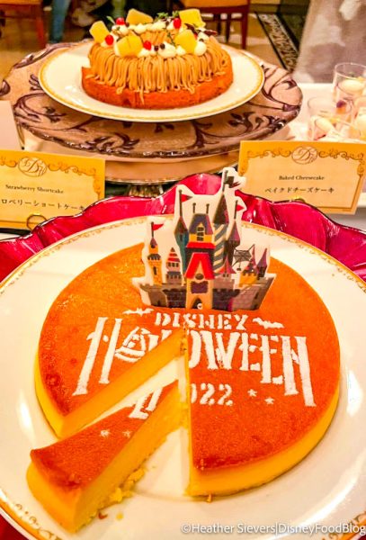 The baked cheesecake had a spooky castle on it with the words “Disney Halloween 2022” on top.