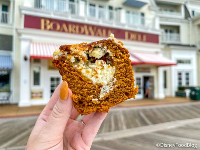 Disney has marked this as a “new” offering, but it isn’t exactly the first time we’ve seen a pumpkin cream cheese muffin made available in Disney World. Back in 2020, a pumpkin cream cheese muffin arrived in Disney’s Animal Kingdom and it was seriously fantastic. We also saw a pumpkin cream cheese muffin offered in 2022 at Trolley Treats in Disney’s Hollywood Studios.