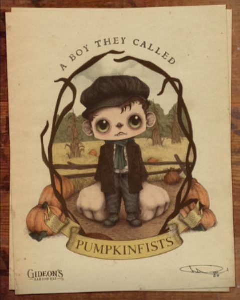 Cookies and cake aren’t the only things Gideon’s Bakehouse is famous for. This bakery has a unique theme, with a dark interior, dusty bookshelves, and slightly macabre decorations. One wall is covered in sketches of various characters, who are like mascots for the different treats. The character for this month’s treats is Pumpkinfists, who will be featured on the menus handed out at the Disney Springs location from now through Thanksgiving.