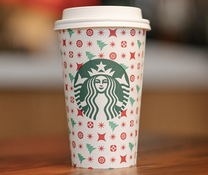 Gary Jacobson, Starbucks Creative Director, said, “We have always talked about the cups as little gifts, and we hope they feel like a festive present to our customers and store partners.” This year’s campaign includes sparkles, snowflakes, and ornaments, and each cup also has a gift tag on the back. This cup design is known as the Ornament Wonder, featuring a design of tiny holiday icons, like Christmas trees and ornaments.