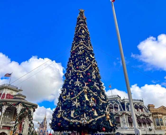 The tree was missing from the decorations that arrived in Magic Kingdom yesterday, and we were wondering just when it might make an appearance, but now the wait is over.