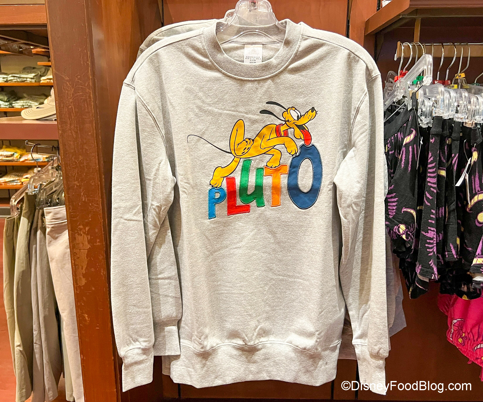 We already told you about ALL the new holiday merchandise that arrived in Magic Kingdom, but there are loads of other things, too! We also found a fun Pluto Sweatshirt for $52.99…