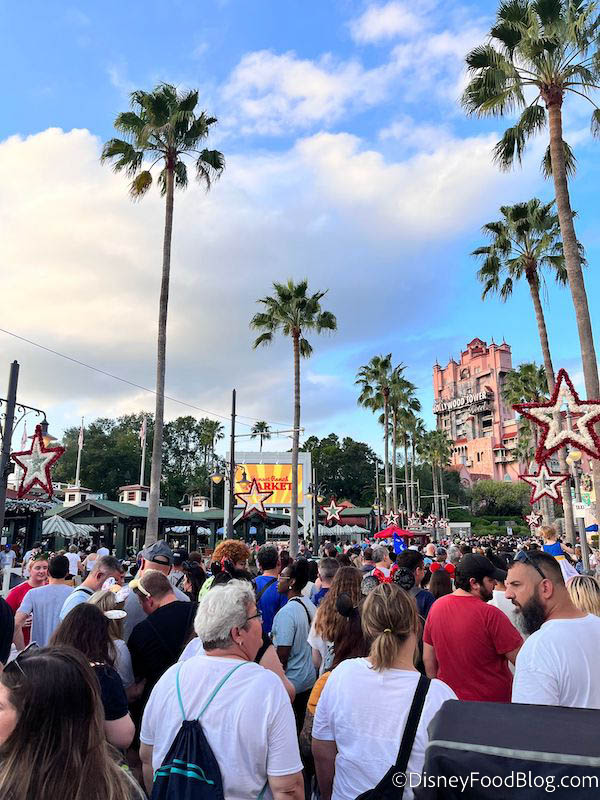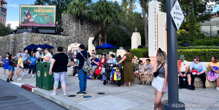 On opening night, there were two showings of Fantasmic!. One at 8PM and one at 9:30PM. So, as you can see, a massive line formed well before the show.