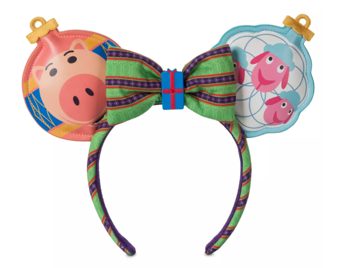 The two ears are made to look like ornaments, with Hamm the pig and Bo Peep’s sheep on the front. In the middle, you’ve got a bow that’s secured with a wrapped-up gift. How fun!