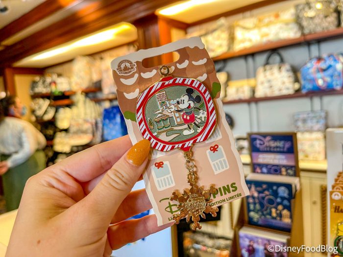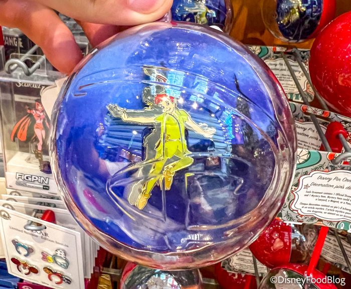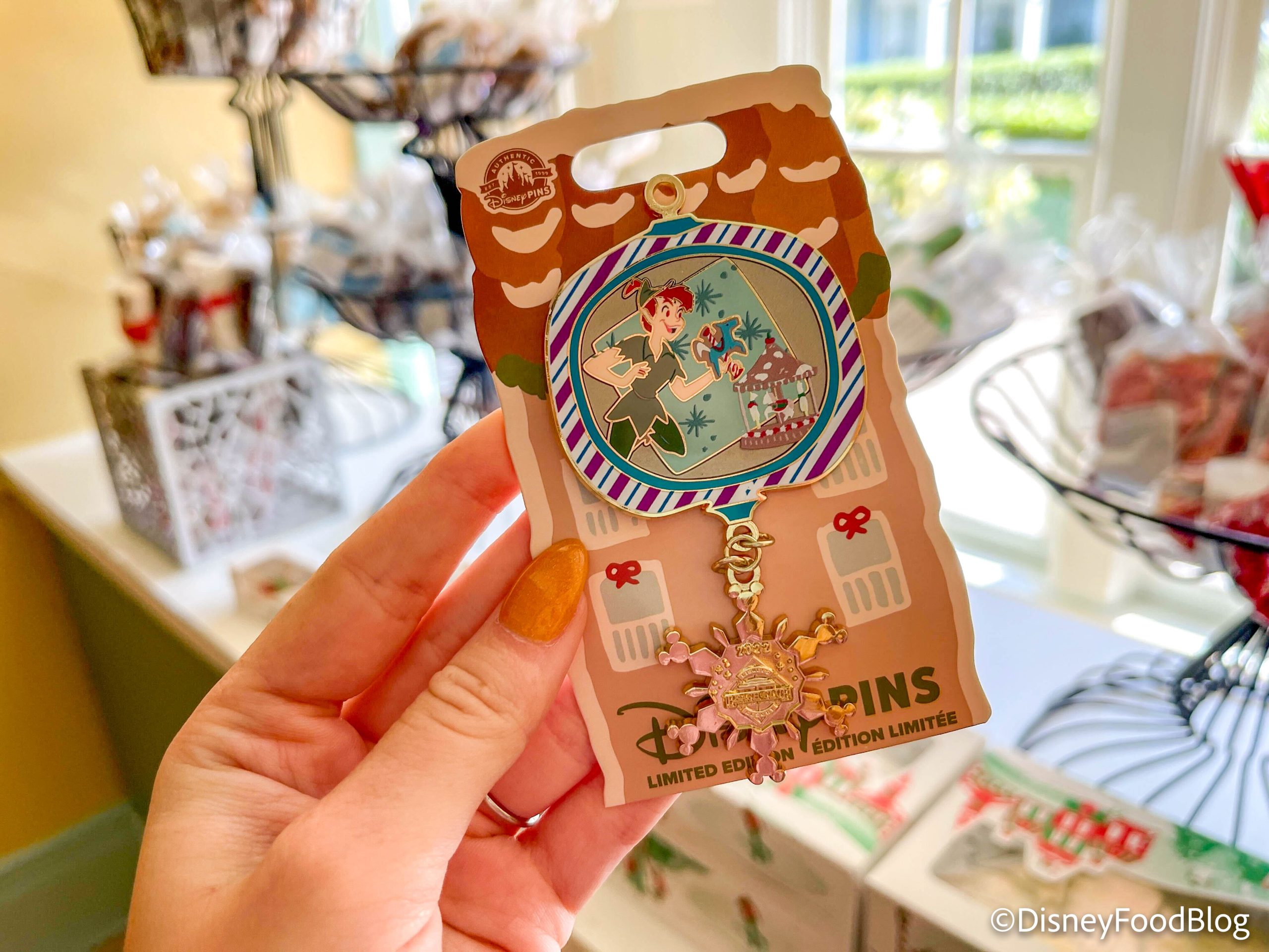 Guess what else we found in the merchandise shops — if you guessed pins, you’d be correct! There’s the Peter Pan Holiday Pin…