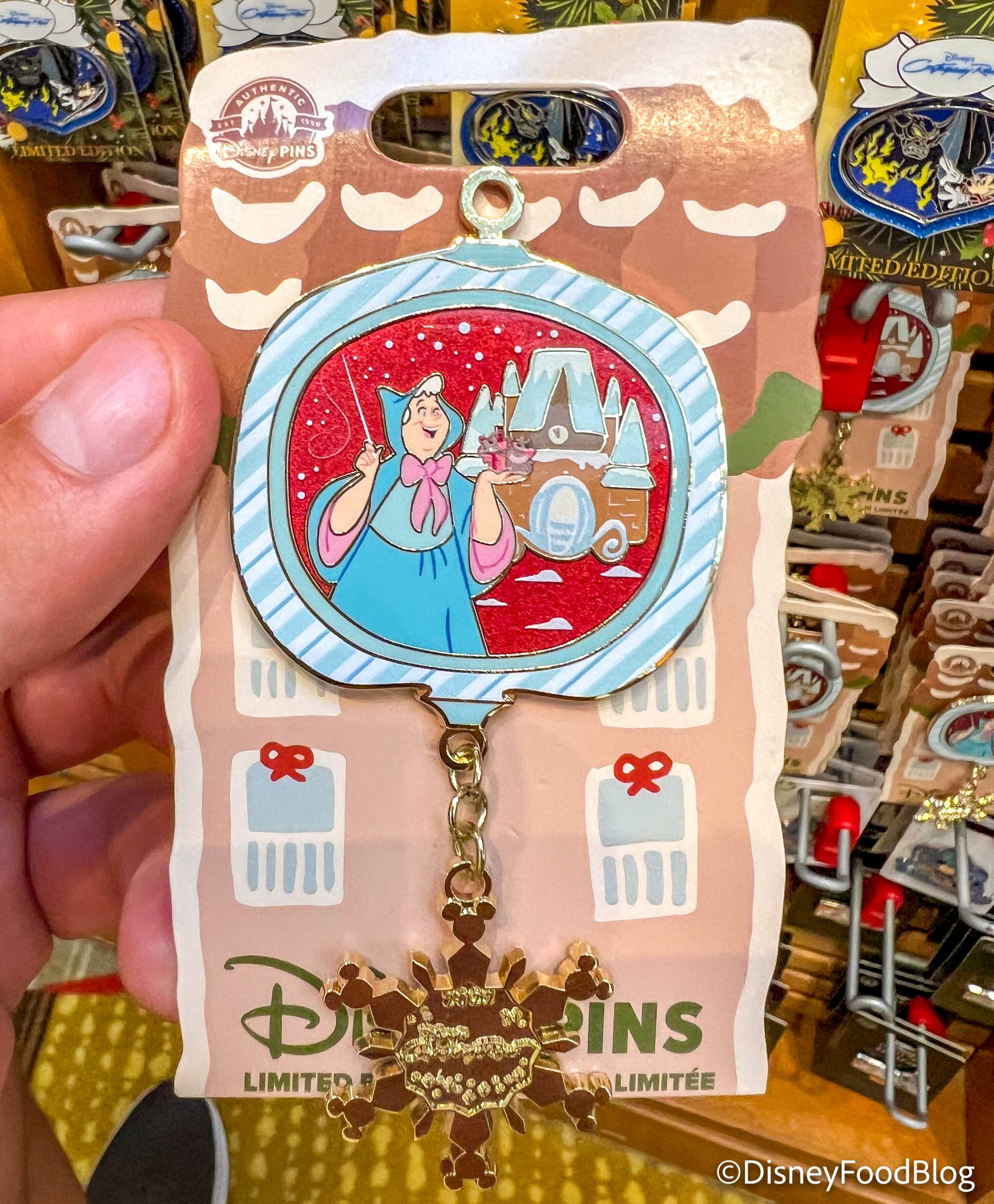 We’ve seen a few of these pins over at Magic Kingdom (along with a TON of other holiday merchandise) but you’ll find things like the Fairy Godmother Holiday Pin at Disney’s Contemporary Resort for $19.99!