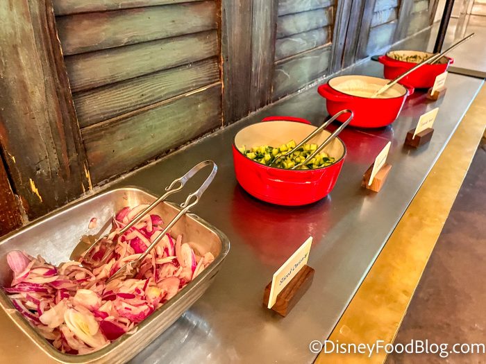 There are multiple dressings to choose from, including a housemade ranch, a Sambal Vinaigrette, and a Coconut Curry Vinaigrette. At that station, you’ll also find the Kachumbari.