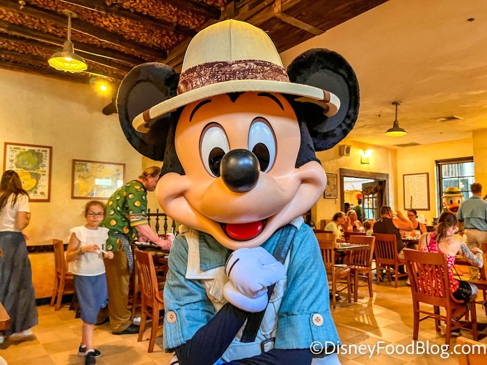 - You really want to do a character meal with Mickey and friends! This is a great option for a character meal for breakfast, lunch, or dinner. You get to meet four main characters in their safari outfits, and those are pretty rare costumes!